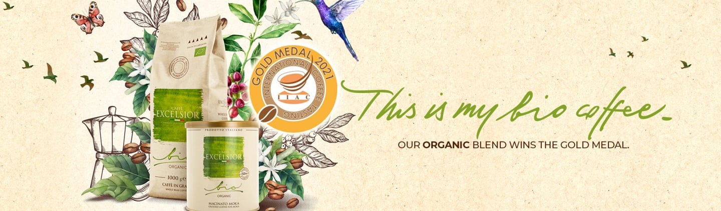 Caffè Excelsior Bio Organic 100% arabica was awarded with the Gold Medal at the second session of the International Coffee Tasting held in Italy on June 24, 2021.